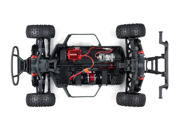 Its full-time 4WD transmission uses strong front, rear, and centerline telescopic driveshafts that can’t be lost during heavy impacts, unlike dogbones. A simple, dependable, responsive steering assembly complements the ultra-reliable drive system and features a servo horn with built-in servo saver. The SENTON™ 4X4 MEGA RTR includes the waterproof Spektrum™ SPMS650 digital servo for 20% more torque than the previous version’s ADS-5 servo.