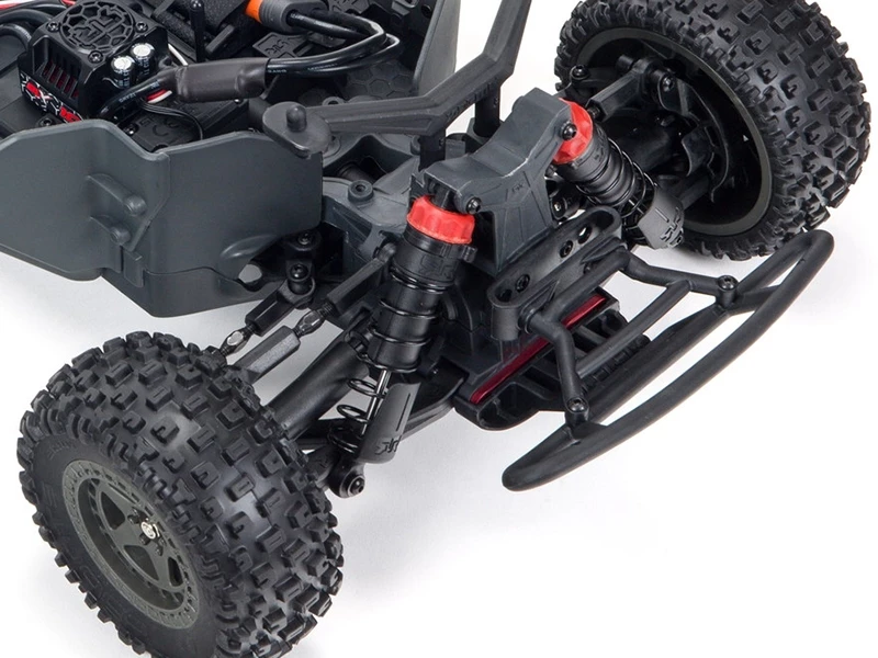 The self-bleeding, oil-filled shocks, now with silicone O-rings, use a tried and tested, coil-over design for simple maintenance and amazing handling. Their innovative rod-end has a molded-in spring perch for extra toughness. Extended height dirt defenders and a close-fitting body limit the amount of dirt and debris that can get into the chassis tub. Front and rear bumpers offer defense against impacts.