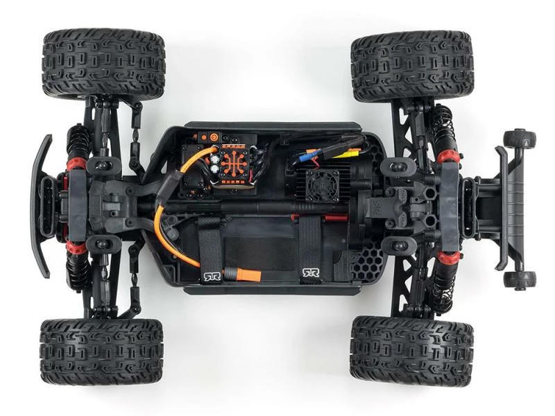 The proven tough ARRMAĀ® 4X4 platform lets you bash at high speeds in almost any environment – off-road, on dirt and grass, on parking lots and over paved and asphalt surfaces. Its durability comes from a strong composite chassis featuring extended height dirt defenders, oil-filled shocks with silicone O-rings, metal geared differentials and more. Rugged bumpers and high-traction dBootsĀ® Katar⢠tyres mounted on tough, gun-metal colored wheels add to its unstoppable performance. The VORTEKS⢠4X4 3S BLX also includes a sleek, new stadium truck body with tough, injection-moulded wing and protective roof skids.