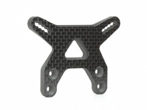 B6.2 Carbon “Gullwing” Front Shock Tower is made from 100% carbon fiber and designed for strength. We call this tower custom because we removed the inner kit hole since it was never used, added in-between holes for finer adjustments, and you may now go a half hole out further on the tower than the kit tower. Check the hole locations on the file below.